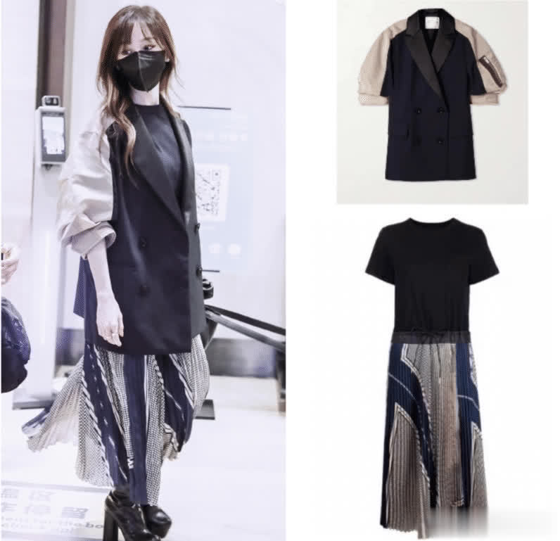 就算是选择了这种混色的服饰,也尽量以深色系为主。比如这件短外套就是一蓝色,绿色和黑色搭配起来,但是她的主色调还是以黑色为主,所以穿起来不会显得太过装嫩,反而因为色系的混杂,看起来很清纯,有活力感。